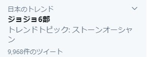 가 트위터에서 확산되어, '죠죠 6부'가 트렌드에 오른 일까지 있었던