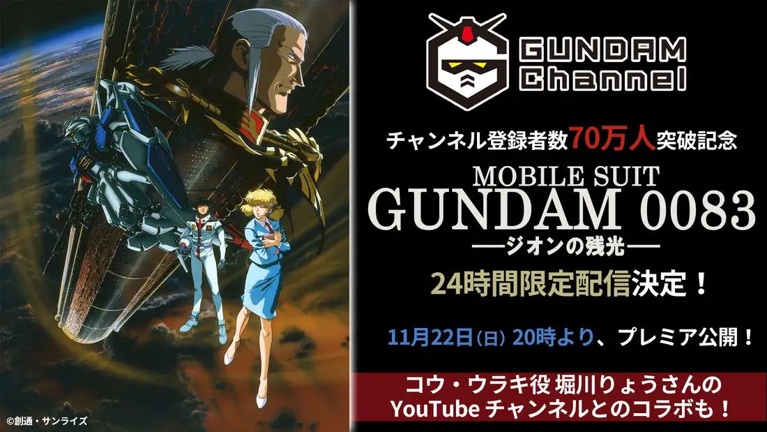 극장판 '기동전사 건담 0083 지온의 잔광'이 유튜브의 건담 채널에서 공개될 예정