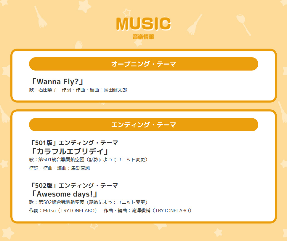 오프닝 테마곡은 '이시다 요코'씨가 노래를 담당한 'Wanna Fly?'라는