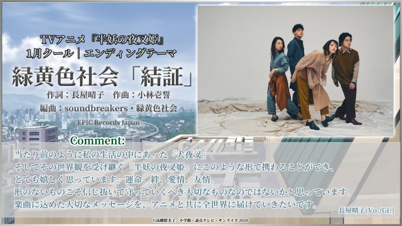 밴드 '녹황색사회'가 TV 애니메이션 '반요 야샤히메'의 새로운 엔딩 테마곡 담당