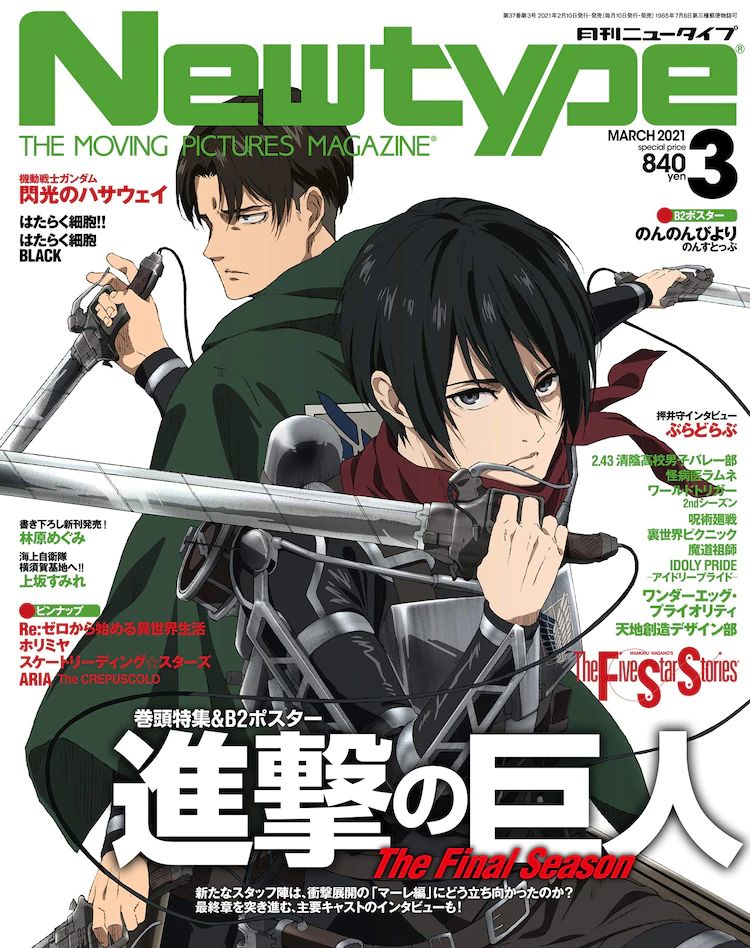 TV 애니메이션 '진격의 거인 The Final Season' 특집이 '월간 뉴타입' 2021년 3월호에 게재