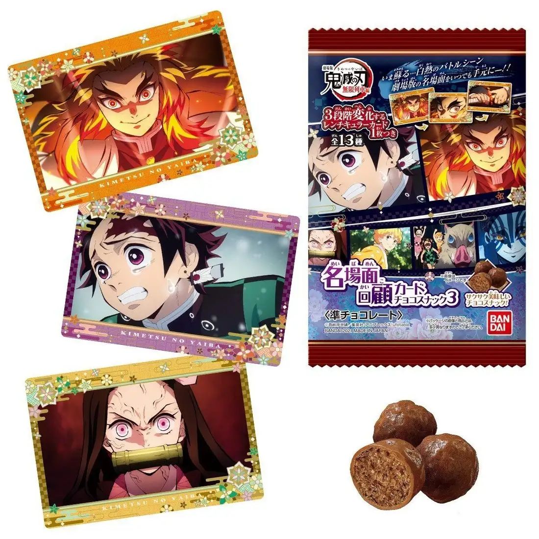 '극장판 귀멸의 칼날 무한열차편'의 카드가 포함된 초코 스낵 제 3탄 발매 소식
