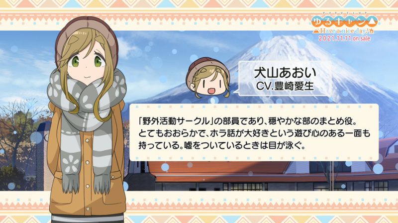 게임 '유루캠프 Have a nice day!' 성우 토요사키 아키의 코멘트 영상 공개
