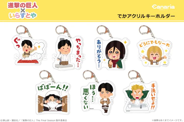 '진격의 거인'과 '이라스토야'의 콜라보레이션 라인 스탬프 일러스트가 사용된 굿즈 발매