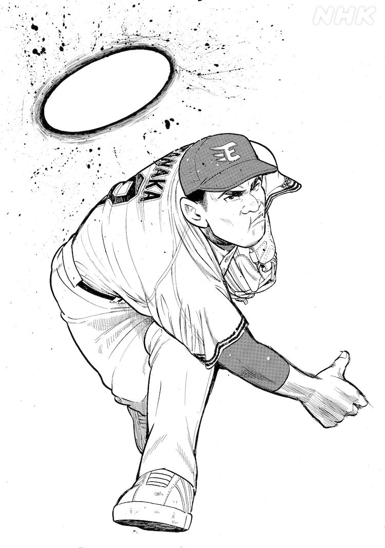 만화가 '아다치 킨타로'씨가 야구 선수 '다나카 마사히로'의 에피소드 만화를 그렸답니다.