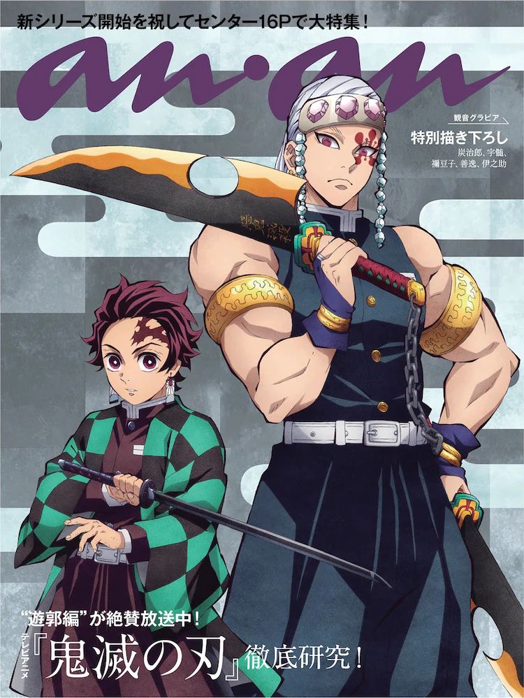 애니메이션 '귀멸의 칼날'의 새로 그린 일러스트가 anan 백 커버 장식