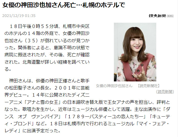 성우 칸다 사야카 씨의 사망 소식입니다.