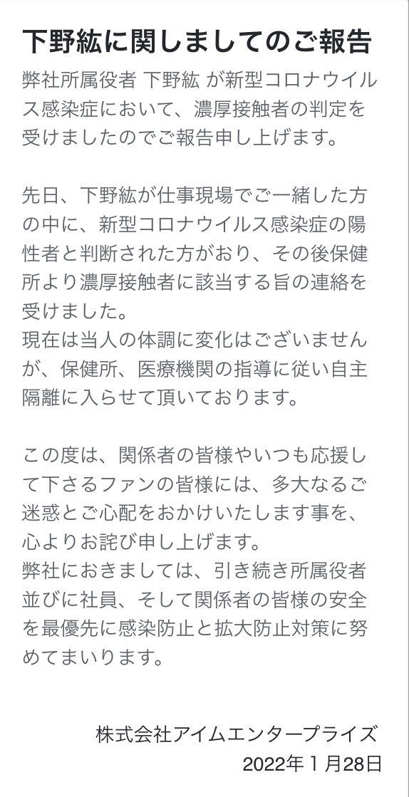 1월 28일에 소속 사무소인 아임 엔터프라이즈측이 발표한 사실