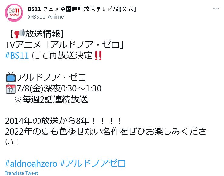 (출처: https://twitter.com/BS11_Anime/status/1537758704212115456)