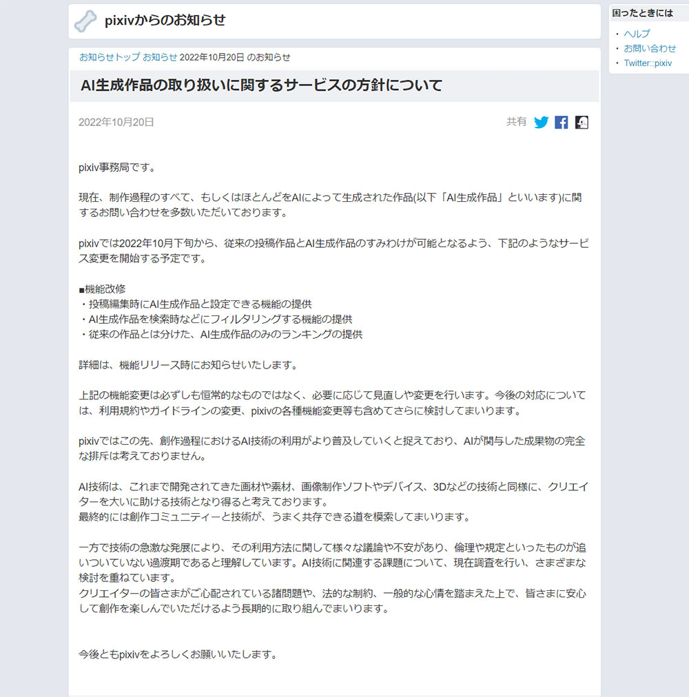 픽시브측은 '기술의 급격한 발전으로 인해, 그 이용방법에 관해 다양