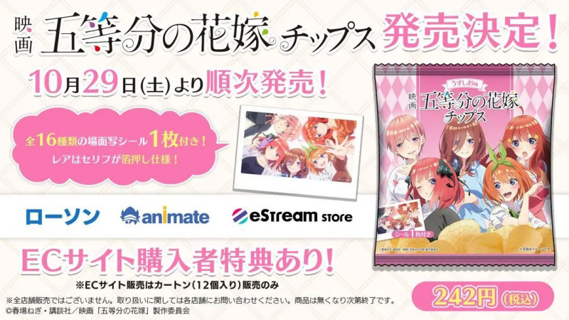 씰이 포함된 스낵 과자 '극장판 오등분의 신부 칩스' 발매 소식