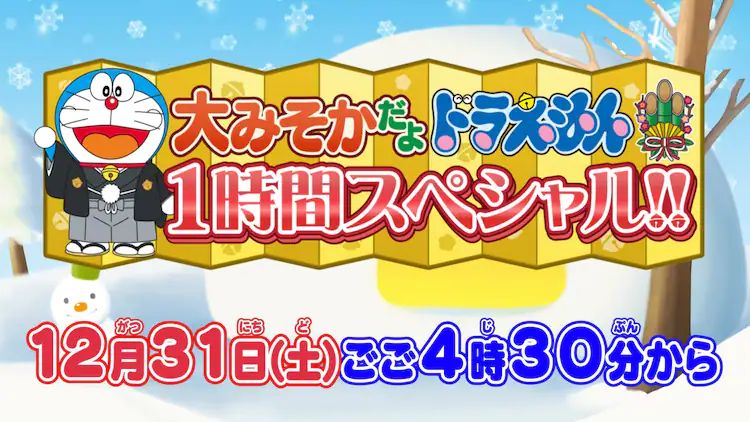 애니메이션 '섣달 그믐날이야! 도라에몽 1시간 스페셜!!' 방송 소식