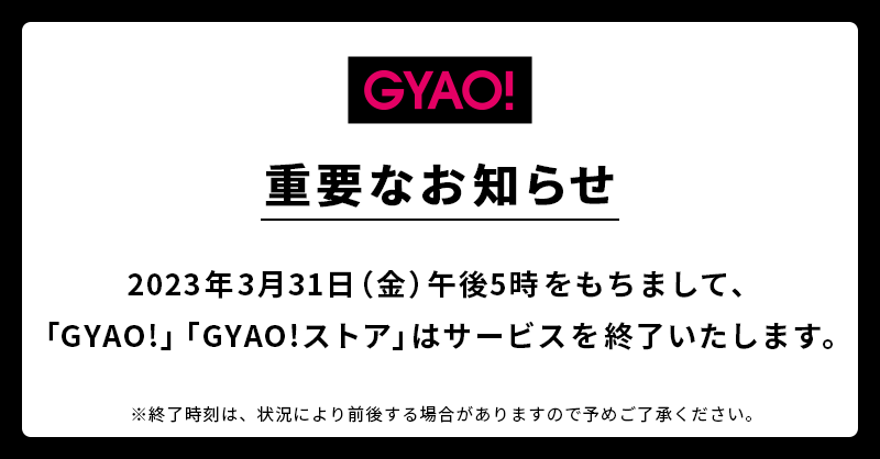 일본의 동영상 서비스 GYAO!가, 2023년 3월 31일 오후 5시를 기해