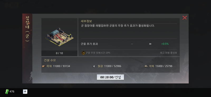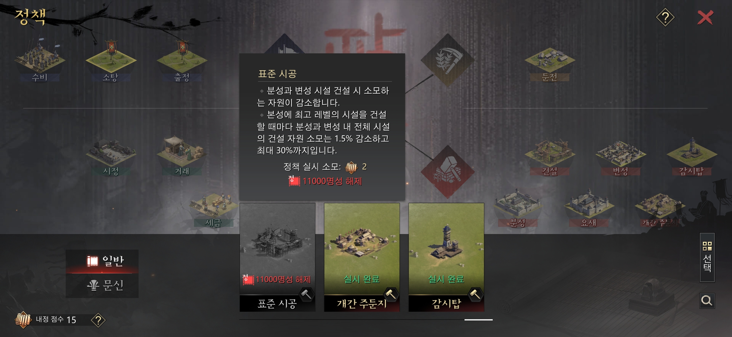 저 표준시공을 오픈시키기 위해서는 일정 명성치에 도달해야 가능합니다