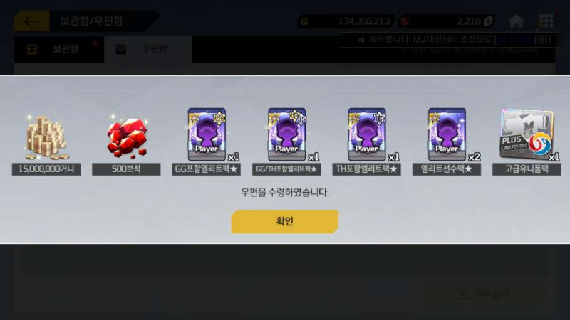 거니랑 보석 선수 팩 진짜 빠방하게 챙겨주는군요
