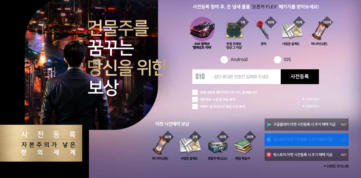펜펜토 자본주의가 낳은 게임 쩐의전쟁 사전예약하고 있어요! 작성일시 : 2022. 10. 31 (16:13) 조회 : 711 / 댓글 : 1 지금 사전예약 하고 있는 경영 시뮬레이션 게임으로사업장을 경영하여슈퍼카 콜렉터, 부동산 쇼핑, 건물주 등평소에 한번쯤 해보고 싶었던 상류층의 삶을 누려볼수 있다고 하는데요개인적으로 시뮬레이션 장르 게임 좋아해서사전예약 박고 오픈존버하고 있어요 ㅋㅋㅋ사전예약 보상으로 SSR 컬렉션에 머니카드 120개 등 인게임 아이템 지원해줘서가볍게 달려볼 수 있을 것 같아요. 1추천 글쓰기스크랩 신고