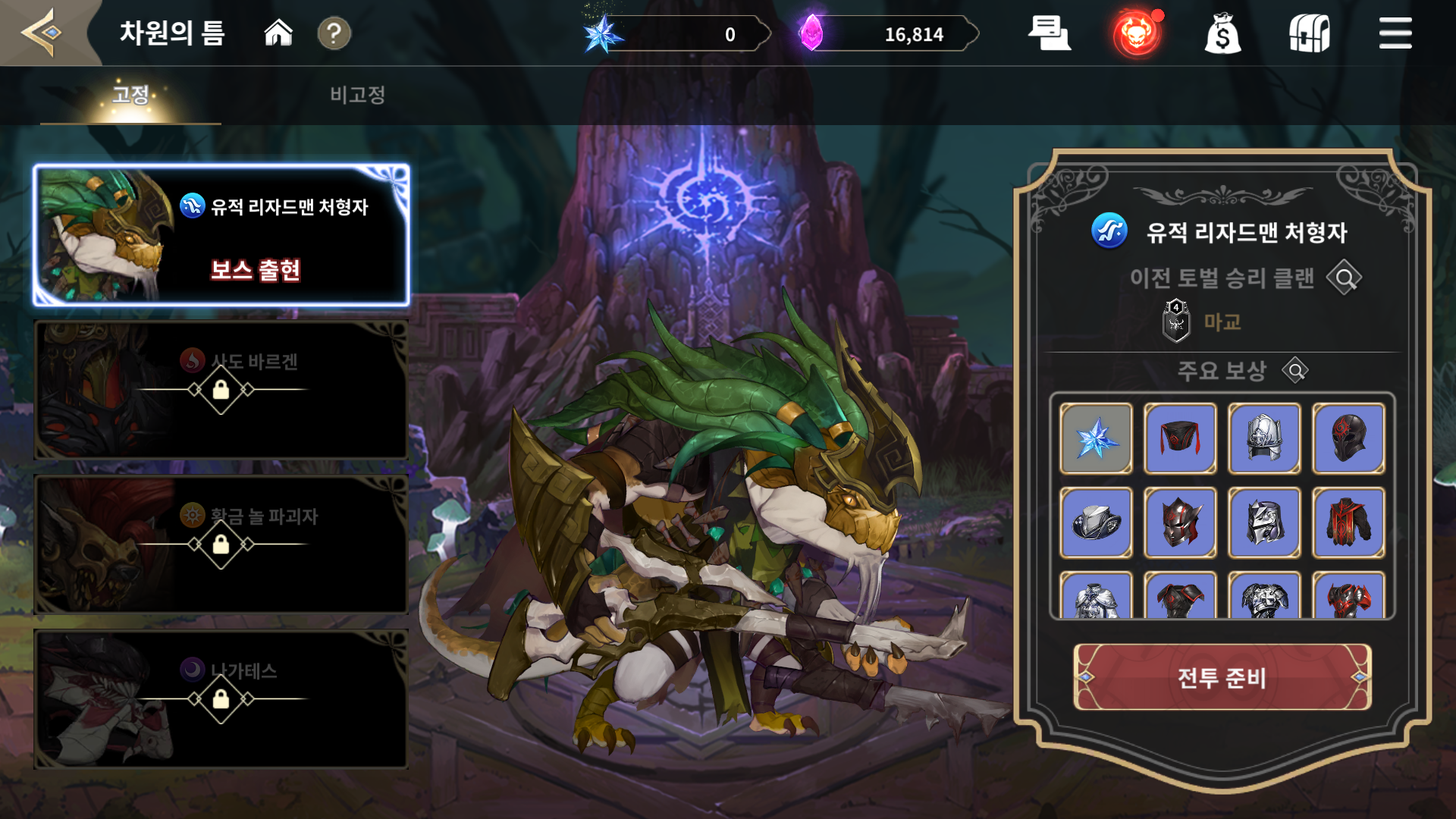 드랍되는 보상 목록을 보니 유적 리자드맨 처형자의 흔적으로