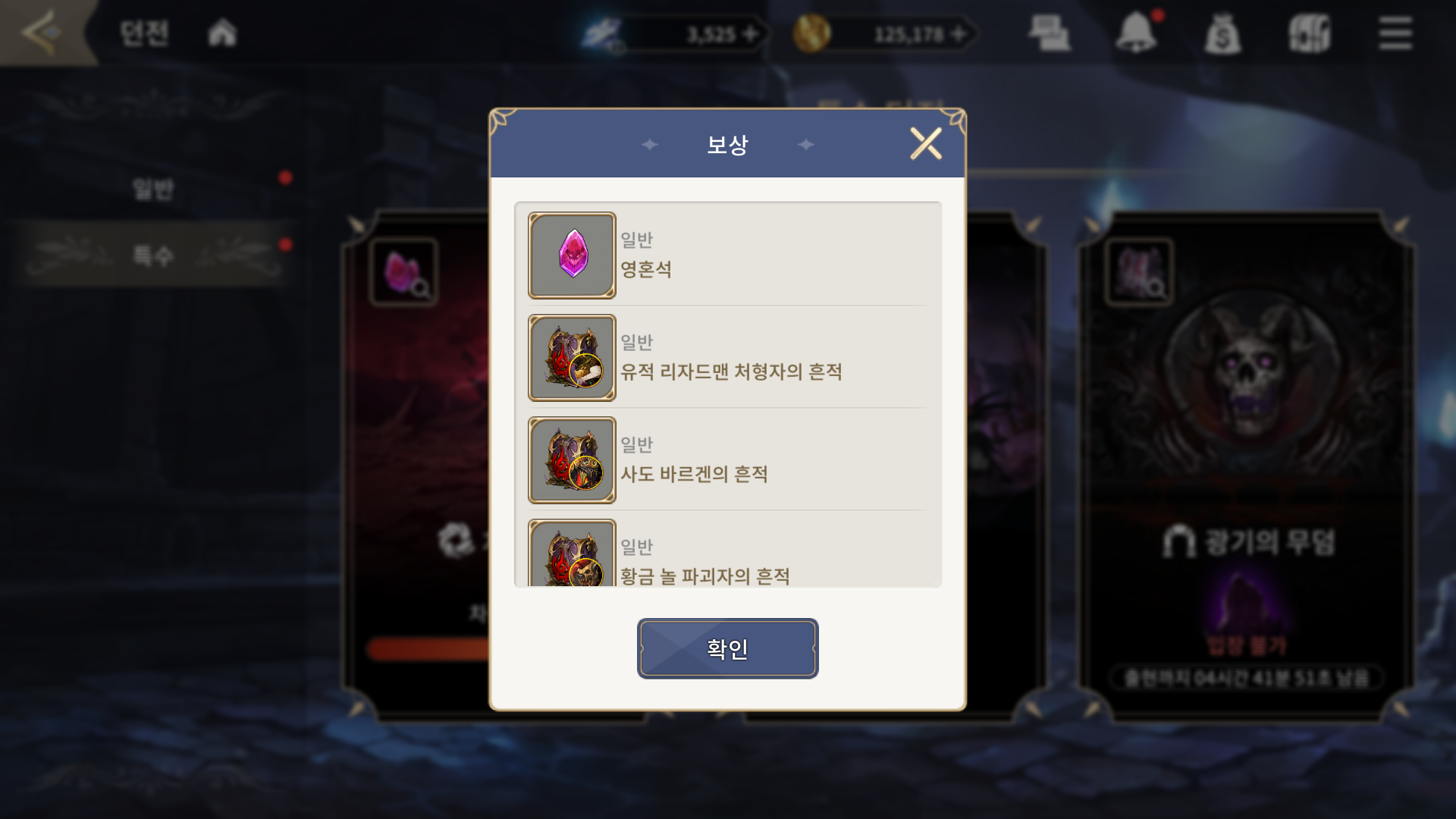 무기 또는 영혼석 보상을 획득할 수도 있고,