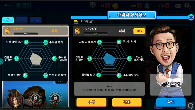 무한도전 캐릭터를 얻을려고 뽑다고 하하S급이 나와서