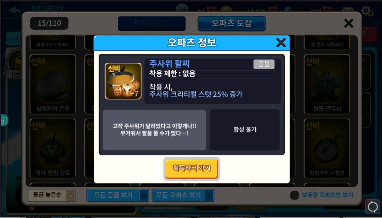 부루마불M은 오파츠라는 아이템과 영웅이 존재하는 게임인데요