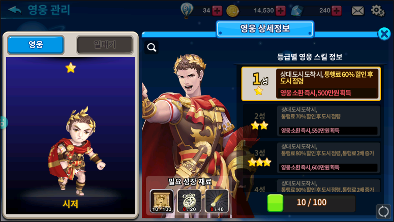 그리고 영웅은 통행료 할인후 도시점령 배수증가시켜주는 시저와 잘맞는데요