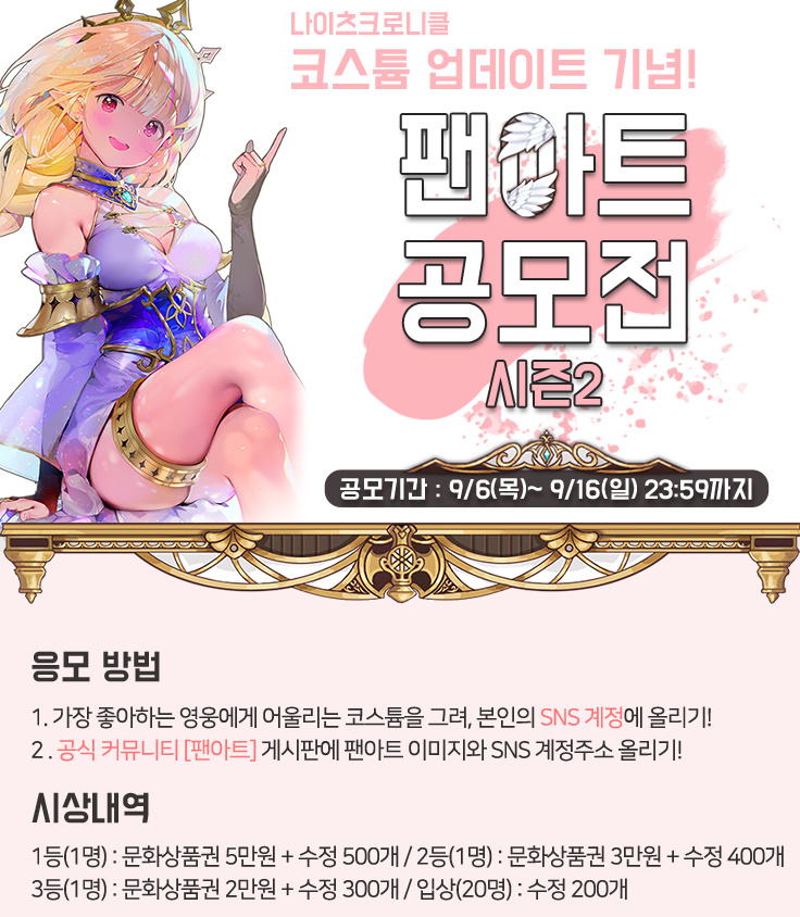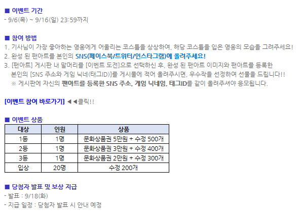 이번에 코스튬도 새로 나왔는데 출시 기념으로 팬아트 이벤트를 진행하더라구요.