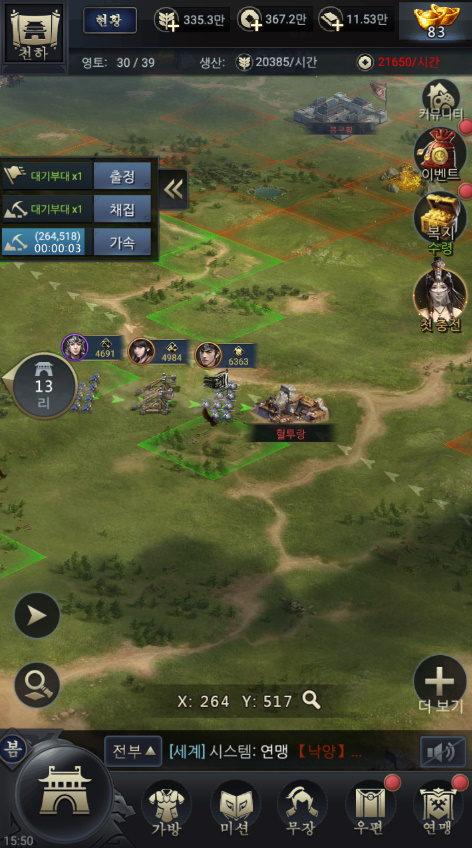 가장 중요한건 무장탐방을 통해 장수들을 계속 획득하고