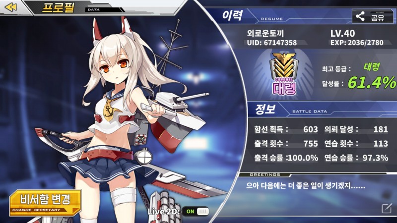외로운토끼 으악! 드디어 탈출했다 작성일시 : 2018. 04. 18 (12:31) 조회 : 1,718 / 댓글 : 7 3-4를 드디어 탈출했네여직장 일도 바쁘고 해서 조금 조금 씩밖에 못하고있었는데 그래도 빨리 나와준것같아여ㅋㅋㅣ이제 키우는 일만 남았네여.... 함대도 빨리 열어야되는데..... 7추천 글쓰기스크랩 신고