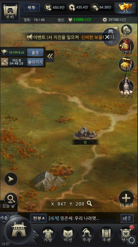 왕좌지대는 매력85이상 장수들이 탐방을 가능한데