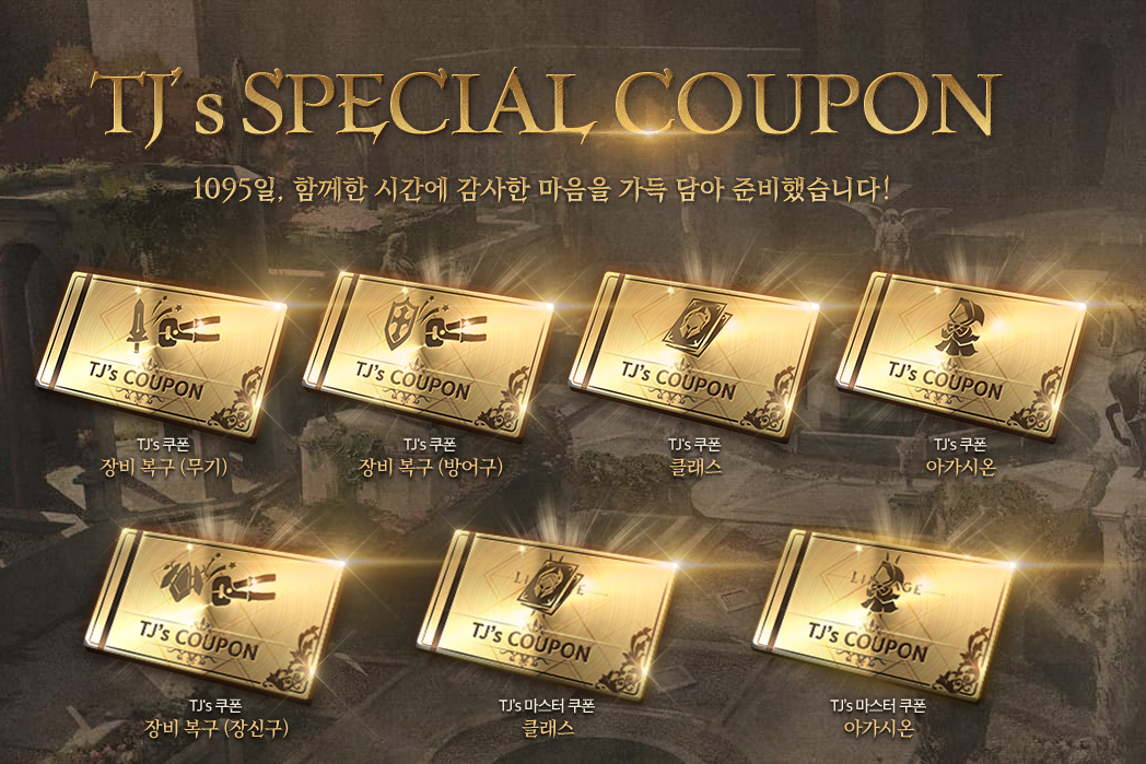 리니지2M 이 3주년을 맞이하여 새로운 TJ`s 쿠폰을 공개 했습니다