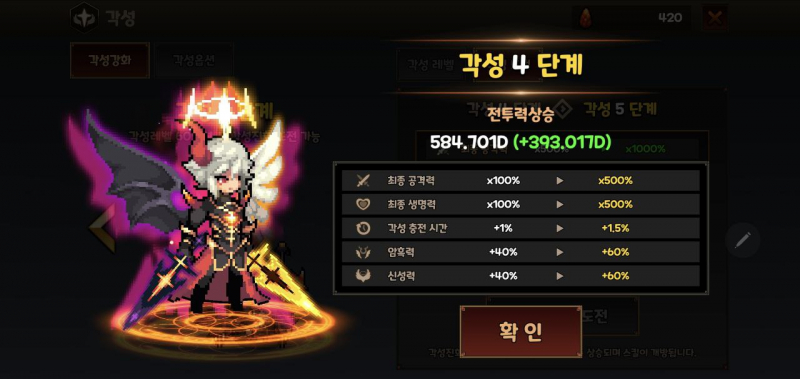 상위 던전과 빠른 클리어를 위해서는 각성 단계를 올리는데 중점을 두어야된다고 봅니다.