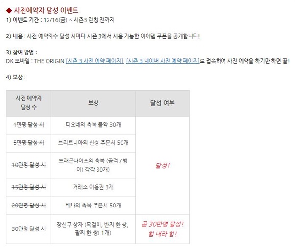 야꿍 DK모바일 더 오리진 시즌3 준비 중 작성일시 : 2022. 12. 23 (15:08) 조회 : 464 / 댓글 : 1 지금 시즌3 사전예약 중인데 이벤트 이것저것 나왔음시즌3 시작하고 길드 생성 지원 이벤트도 하는데길드 생성 아이템 준다니까 길드 들려면 이거 꼭 하는게 좋음그리고 20만명 달성했고 30만명은 곧 일듯 싶은데이번 시즌3에서도 아이템 달달하게 먹고 시작할 수 있을듯 며칠전까지 달달하게 쌀먹했는데 시즌3에서도 바로 쌀먹 드가야지 1추천 글쓰기스크랩 신고