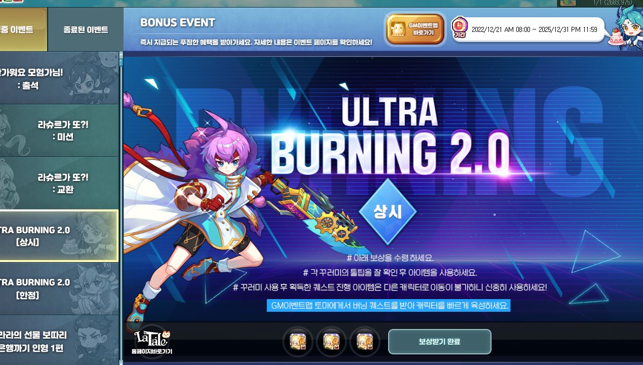 치토스 라테일 울트라버닝2.0 빡사 중 작성일시 : 2023. 01. 16 (16:50) 조회 : 546 / 댓글 : 1 라테일 겨울 대규모 업데이트 진행하면서울트라 버닝 2.0 상시 + 한정 지원으로 만랩까지거의 풀 지원하고 있거든요.딱 2.0 울트라 버닝때 바짝 육성하면금방 초월랩 뚫고 신규 시나리오까지 갈 수 있다고해서열심히 빡사 하는 중입니다 ㅋㅋ 1추천 글쓰기스크랩 신고