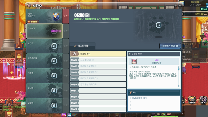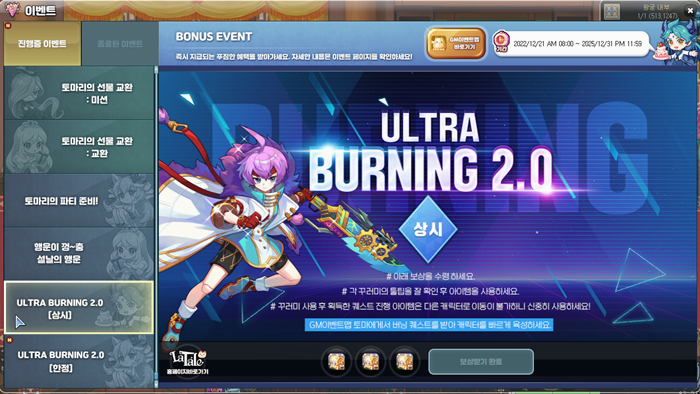 카톡 겨울 시즌이니까 라테일... 작성일시 : 2023. 01. 27 (15:31) 조회 : 467 / 댓글 : 2 역시 여름 / 겨울에 강한 라테일답게이번에도 버닝이 진행 중입니다 ㅋㅋㅋ 이번엔 2.0이라 상시 / 한정이 나뉘고검용셋이라던가 좀 더 보상이 강화됐더라구요 거기다 겨울 2차 업데이트로다섯 번째 힘이라는 패치가 됐습니다정확히는 소환수 각성인데 ㅋㅋㅋ 덕분에 소환수 획득 퀘스트들을 깨야돼요...카르디안은 얻었고 이제는 이레이저 차례입니다 ㅎ 1추천 글쓰기스크랩 신고