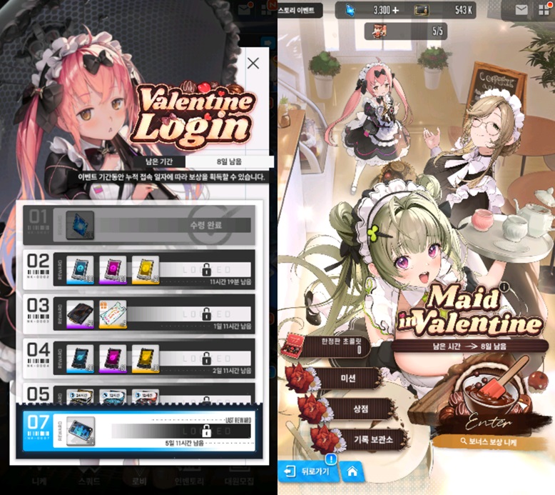 페녹시 니케 발렌타인 이벤트 작성일시 : 2023. 02. 06 (17:46) 조회 : 760 / 댓글 : 1 니케 발렌타인 이벤트로 출석보상부터 이벤트 스토리까지 나왔어요 ㅋㅋ메이드카페 배경에 메이드복 입은 코코아, 에이드, 소다 스토리 보면서 이벤트 스테이지 밀고 있어요 ㅋㅋㅋ 1추천 글쓰기스크랩 신고