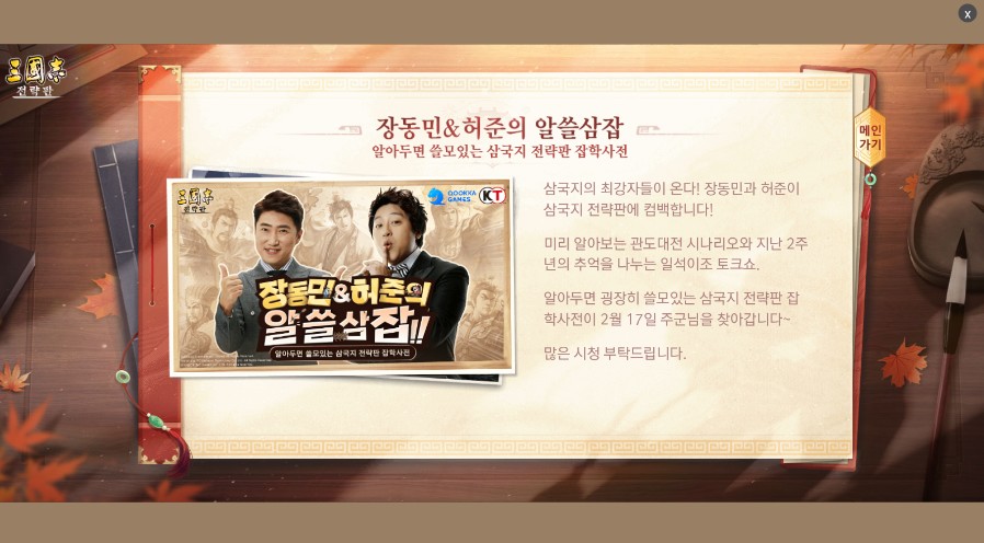 사이라 삼국지전략판 2주년 카운트중임 작성일시 : 2023. 02. 15 (15:14) 조회 : 426 / 댓글 : 1 삼국지전략판도 어느새 2주년이 다가오고 있거든요카운트다운보니까 오늘기점으로 일주일인가 남은 상태인듯거기다 17일엔 허준, 장동민 나와가지고 삼국지전략판 알씁신잡 방송도 할예정이라니까보실분들은 챙겨보세요 ㅋㅋ 저도 그래서 원래 키우던서버 시즌끝나고 시즌새로 시작했길래2주년 보상받아가면서 다시 해보고있음ㅋㅋㅋ이번에 2주년 보상이 진짜 만만치 복귀할만한 시기인듯 2추천 글쓰기스크랩 신고