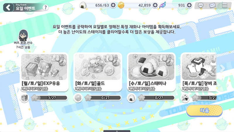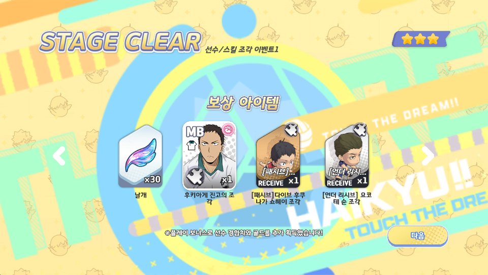사쿠라땅 하이큐 터치 더 드림 요일 이벤트 좋아요 작성일시 : 2023. 02. 24 (16:22) 조회 : 481 / 댓글 : 0 하이큐 터치 더 드림 최근에 요일 이벤트 열렸거든요요일 이벤트 열리면서 재화 수급 더 쉬워져서 진짜 좋아요요일 이벤트에서는 재화만 얻을 수 있는 게 아니고선수/스킬 조각도 얻을 수 있어서 진짜 좋음요 말 그대로 요일 이벤트여서 정해진 요일에만 열리는데일요일에는 전체 이벤트가 열리니까 일요일엔 꼭 빼먹지 말고 밀어두시는 게 좋습니다 ㅋㅋ 2추천 글쓰기스크랩 신고