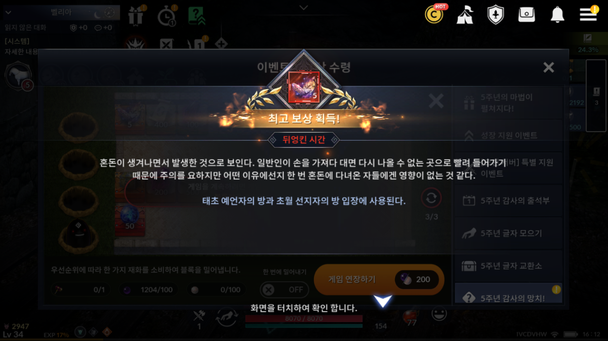 저도 열심히 플레이 하면서 5주년 이벤트 즐기고 있는데