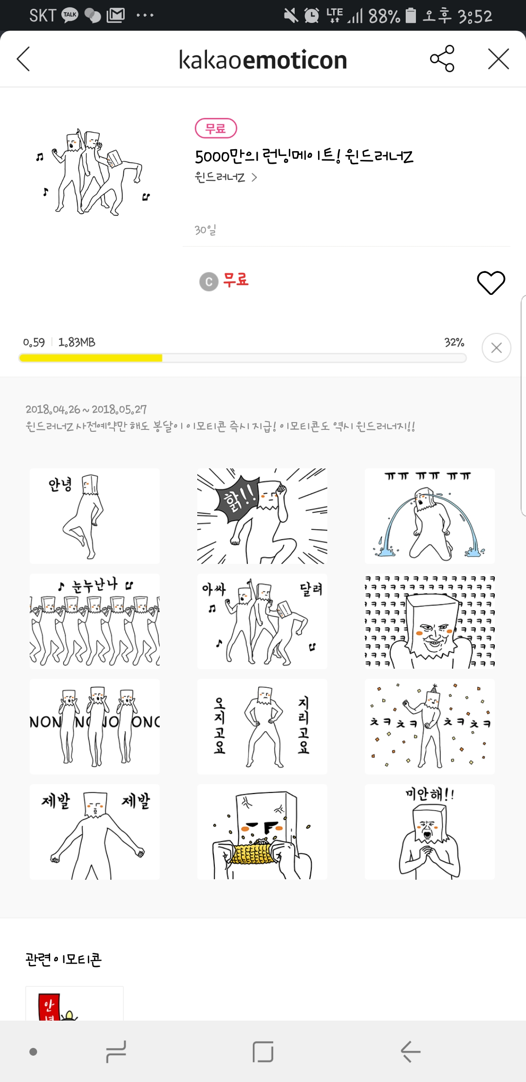 이번엔 윈드러너Z 사전예약하면 요 봉달이 이모티콘 주던데