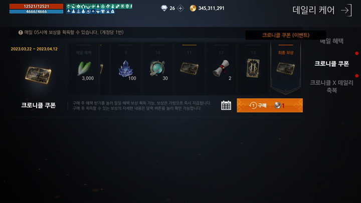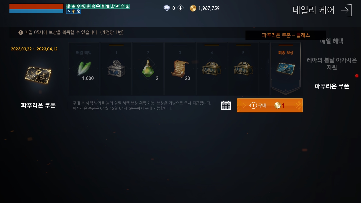 리니지2M의 파푸리온, 크로니클 쿠폰 이벤트는 2023년 4월 12일 05:00까지 진행이 되므로,