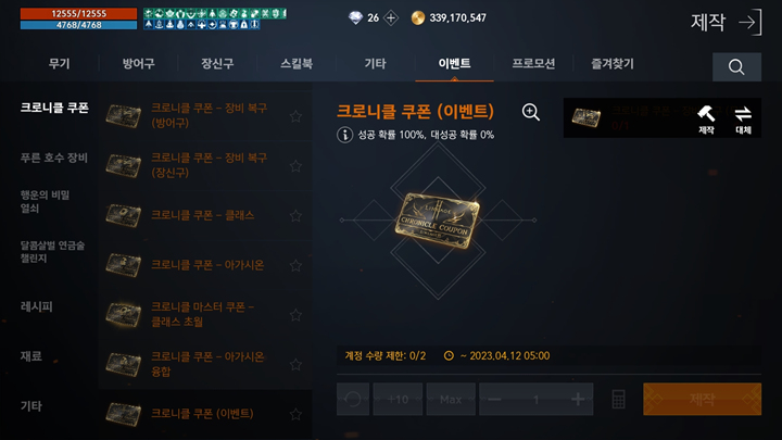크로니클 쿠폰 - 장비 복구(무기)