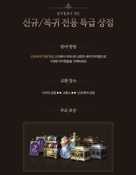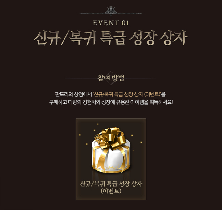 신규/복귀 전용 특급 상점에서는 신규/복귀 특급 성장 상자를 시작으로