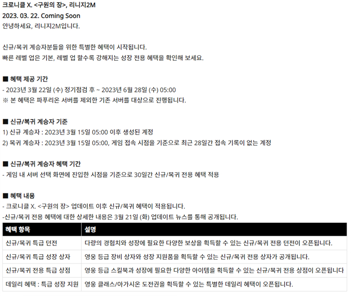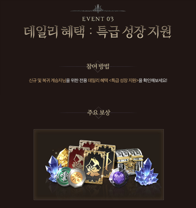 위 조건에 해당되는 신규/복귀 유저분들은 커다란 4가지 혜택을 받을 수 있는데요