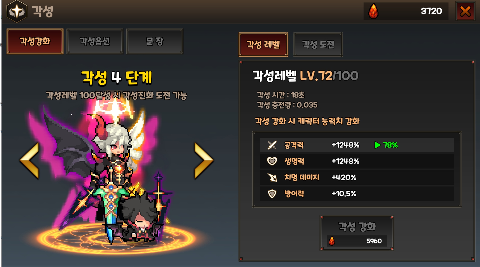 각성 단계를 올려야 콘텐츠들이 개방이 되는 만큼 꼭 각성 업그레이드에도 신경을 쓰시길 바랍니다.