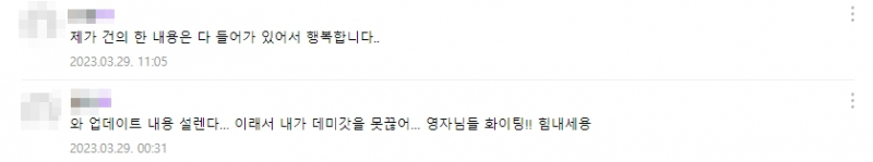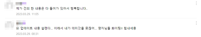 건의사항을 반영하거나 그러지 못한 경우 그 이유에 대해서 유저들에게 설명하는 모습까지 볼 수 있었죠.
