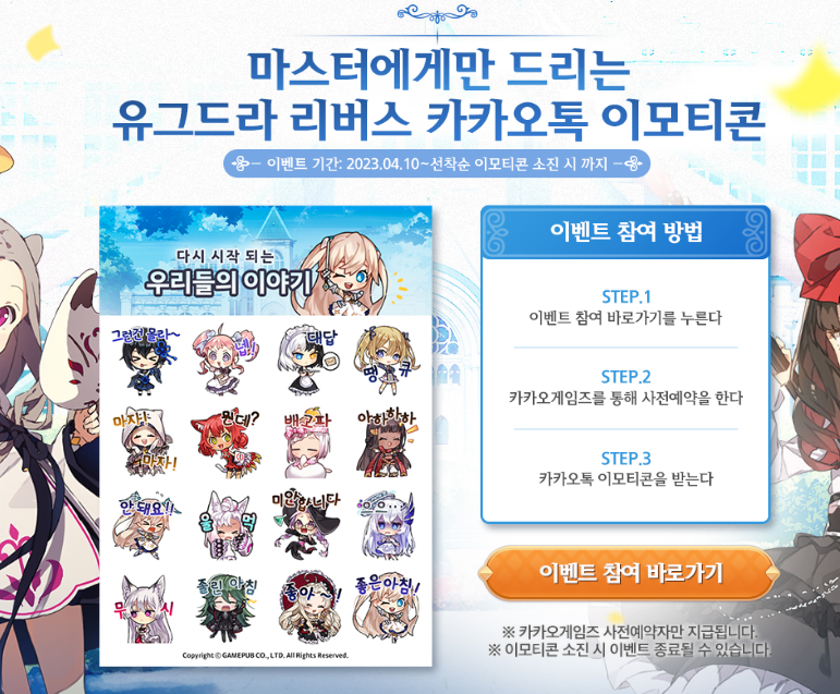 치토스 유그드라 리버스 사전예약 경품 ㄷㄷ 작성일시 : 2023. 04. 17 (14:44) 조회 : 398 / 댓글 : 0 유그드라 리버스라고 신작 사전예약 중인 미소녀 수집형 RPG인데공식 PV만 봐도 애니메이션 그림체에 캐릭터들도 매력있게 생겨서 기대중 ㅋ일단 겜 재질이 취향타서 해볼거긴 하지만 지금 사전예약 완료한거 캡처해서 공식 라운지에 인증하면추첨해서 갤S23+ , 갤럭시 버즈2 프로, 에어팟 프로2세대, 구글 깊카를 뿌리는 중이라사전예약 해놓고 가볍게 인증까지 하고 왔습니다 ㅋㅋㅋ 사전예약해두면 카톡 임티도 무료로 주니까 참고 1추천 글쓰기스크랩 신고