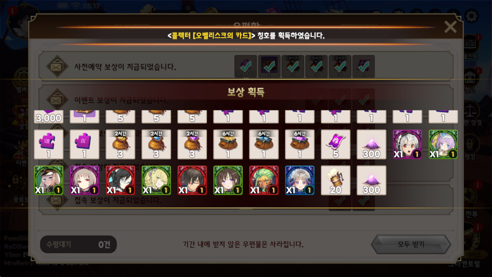 사전예약 보상부터 그냥 미션이나 이런 기본 보상 자체가