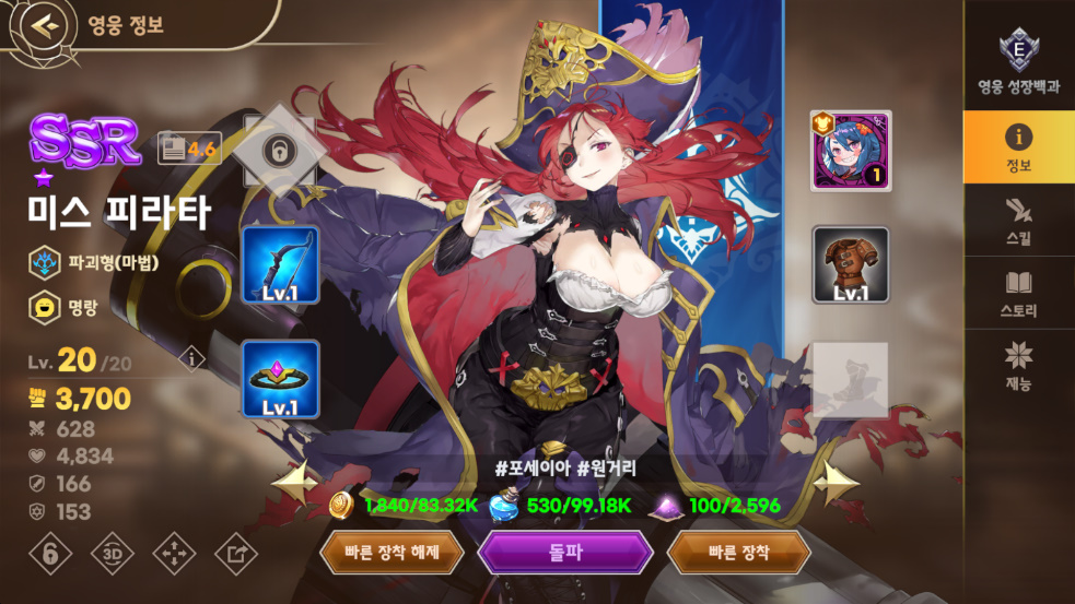미스 피라타같은 경우에는 원거리 딜러인데 스킬이 꽤 좋음ㅋㅋㅋㅋ