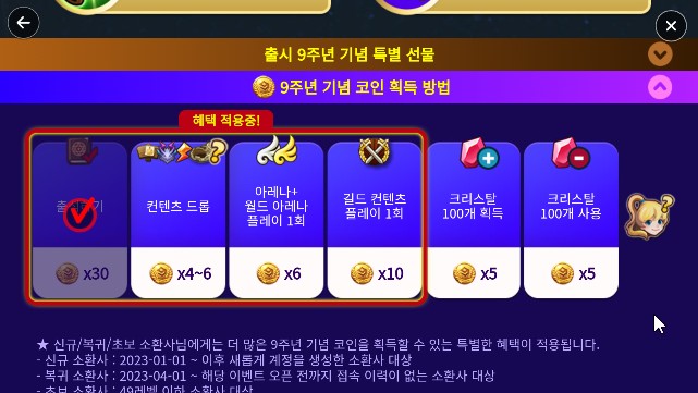 치토스 요즘 서머너즈워 천공의아레나 9주년이라 작성일시 : 2023. 04. 18 (17:28) 조회 : 399 / 댓글 : 0 올만에 접속해서 육성해보고 있는 중입니다. 컨텐츠 드롭이나 아레나 길드 컨텐츠 출석 등하다보면 9주년 기념 코인을 주는데 이걸 모아서 누적 갯수가 일정 이상 달성하면 태생 5성을 최대 9회까지 소환가능합니다.이중에서 원하는거 있으면 선택해서 확정획득하면되고코인 모은걸로 9주년 기념 소환서나 다른 것들도 구매가능한지라요즘따라 복귀해서 열심히 코인 모으는중 ㅋㅋ 1추천 글쓰기스크랩 신고