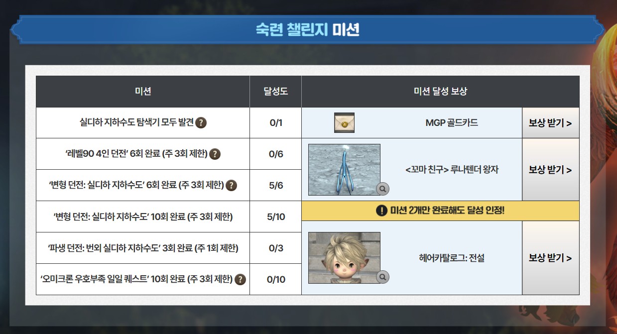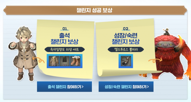 블랙긴상 파판14 모험가챌린지! 작성일시 : 2023. 04. 24 (16:59) 조회 : 424 / 댓글 : 0 이번에 v6.25 업데이트 하면서모험가 챌린지라는 이벤트도 열렸는데참여 방법에 비해 보상이 완전 혜자임!일단 출석만 완료해오 뽀송뽀송한 속삭임양모 의상세트 받을 수 있고성장/숙련 챌린지 미션 깨면 엘드투르스 뿔피리를 받을 수 있단 말씀 ㅎㅎ나는 효월퀘 다깨서 숙련 챌린지인데미션 그닥 어렵지 않아서 이번껏도 무난하게 보상 다 챙겨갈듯 ㅎㅎ 1추천 글쓰기스크랩 신고